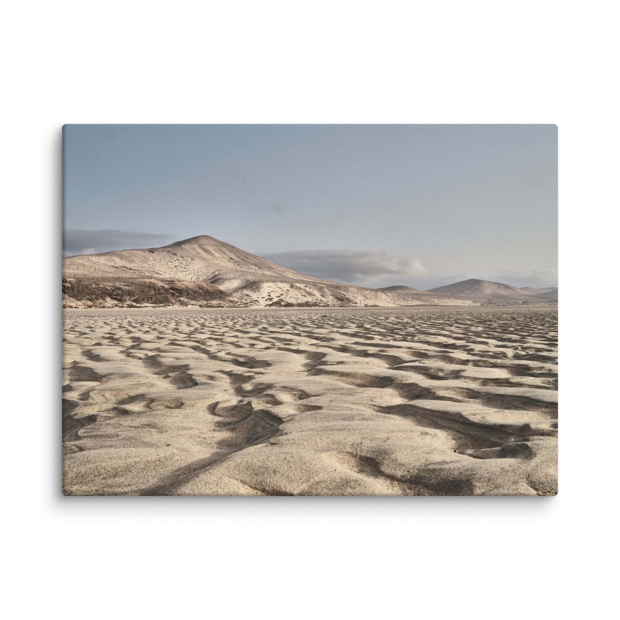El Lienzo Sotavento presenta un detalle de la playa de Sotavento en Fuerteventura. En la imagen se aprecian las texturas de la arena, moldeadas por el viento y las mareas. Además, el lienzo está impreso en alta calidad, lo que asegura colores y detalles claros. Está disponible en varios tamaños, lo que facilita adaptarlo a diferentes ambientes.