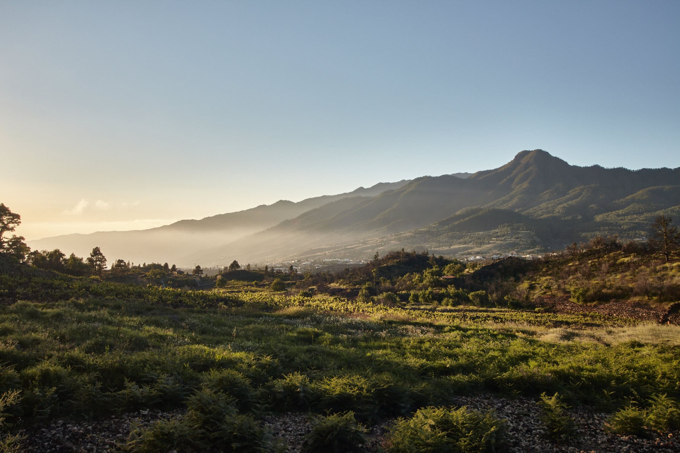- Imagen del atardecer con el paisaje de La Palma como fondo.