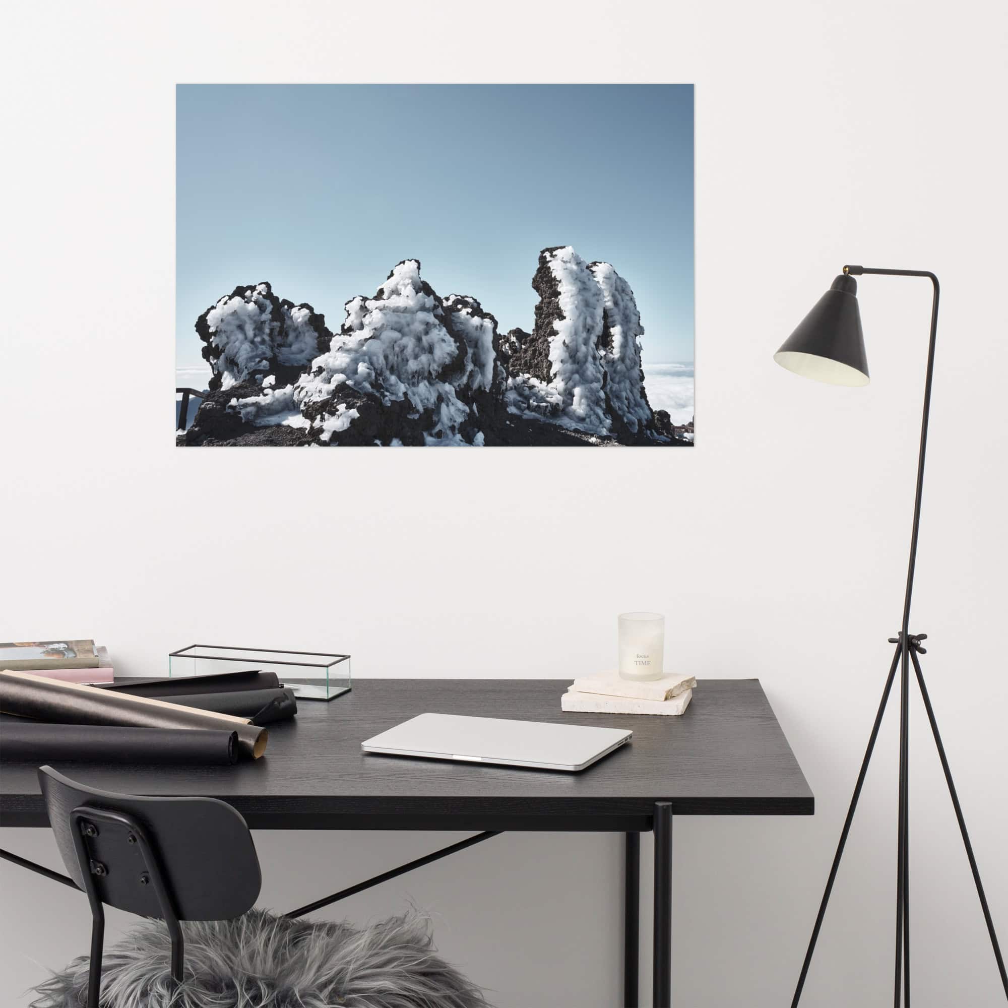 Incluye el Póster Roque Helado en tu decoración y muestra el paisaje helado del Roque de los Muchachos.