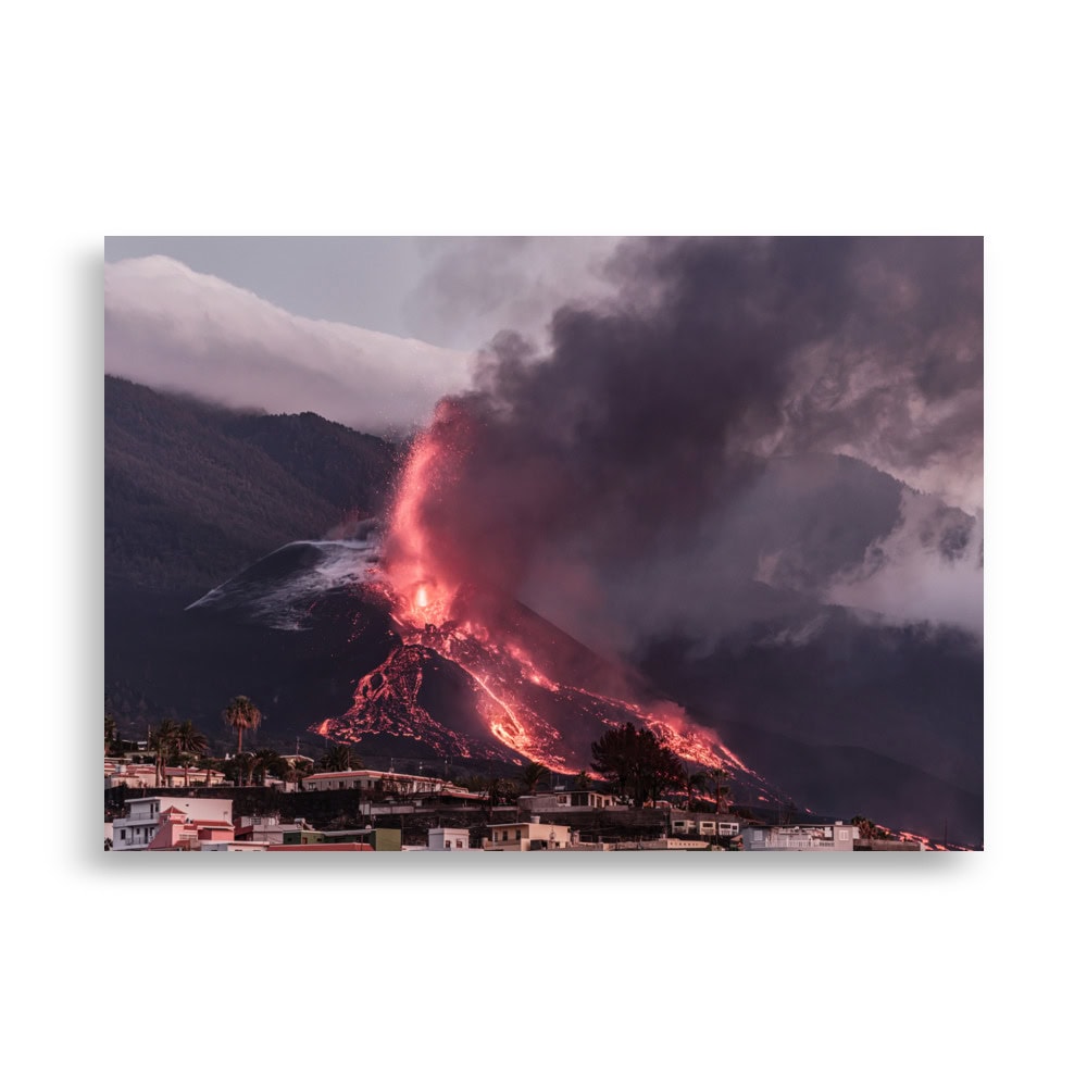 Añade el Póster Volcán 2021 La Palma Edificios a tu colección de decoración para representar un evento natural importante.